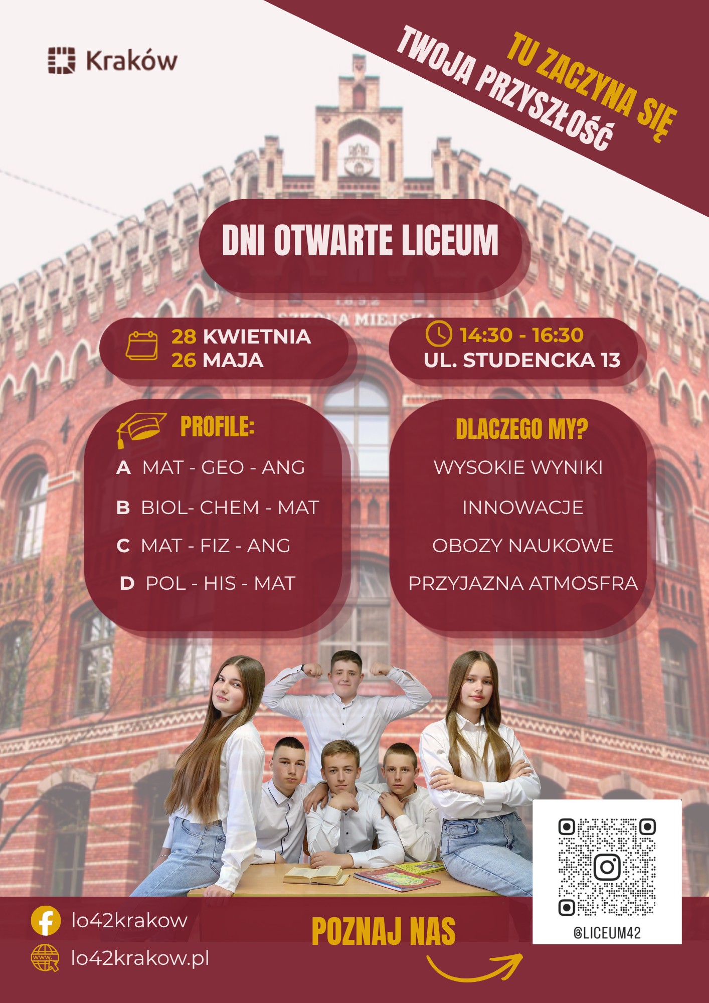 Serdecznie zapraszamy wszystkich uczniów szkół podstawowych zainteresowanych nauką w XLII LO na dni otwarte szkoły: